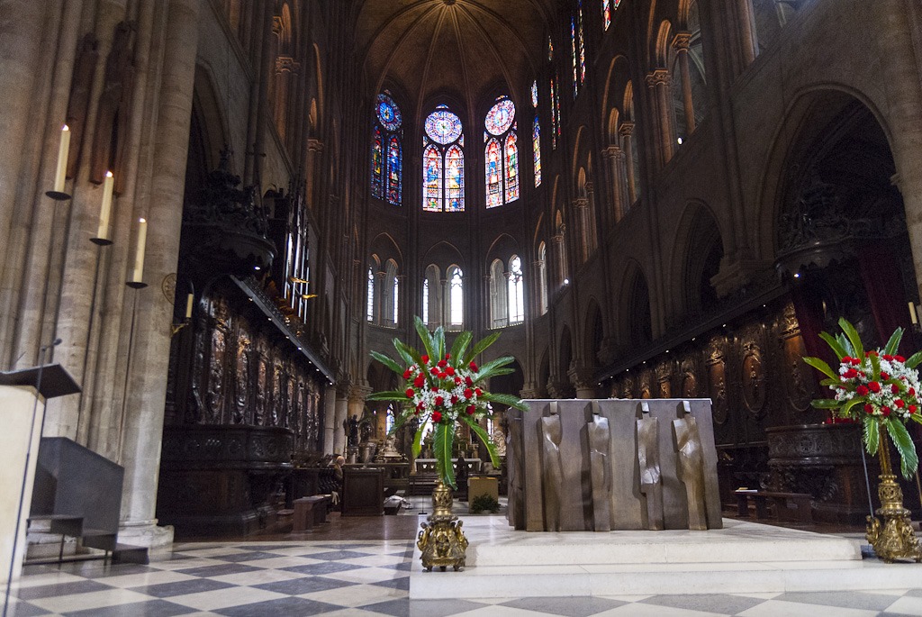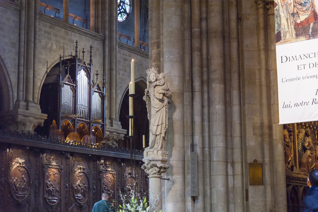 И началось… Два с половиной часа шла месса, которую служил, между прочим, сам архиепископ Парижский. Мы стояли и слушали, и пели, и опять слушали, и опять пели с сотнями людей, заполнявших собор в эти минуты. Воспоминания об этих минутах останутся со мной до конца жизни. Так легко и возвышенно чувствуешь себя, слушая такую музыку, забывая о мирском. Звучал Скарлатти и Лотти. И в течение всей пасхальной недели в соборе будет звучать музыка гениальных композиторов от 15 до 20 века. Только ради этого уже стоило съездить в Париж. Постфактум, жалко, не было возможности (да и желания, если честно, в тот момент) сделать фото. Несколько снимков я сделал уже после богослужения.