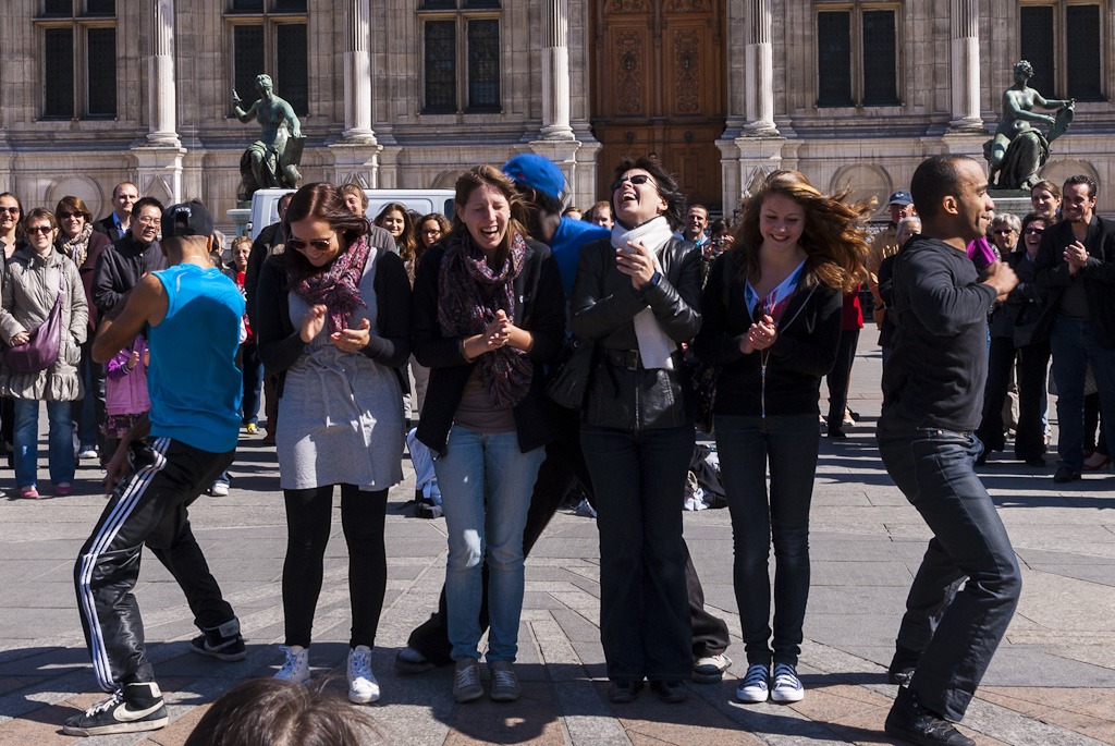 А это — мэрия Парижа! Площадь перед ней — знаменитая Гревская площадь, на которой чего только не было! На ней и сейчас чего только нет! Например, уличные танцоры.