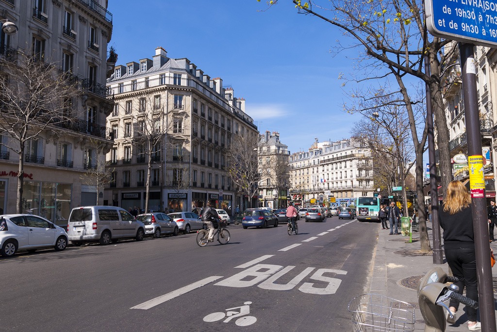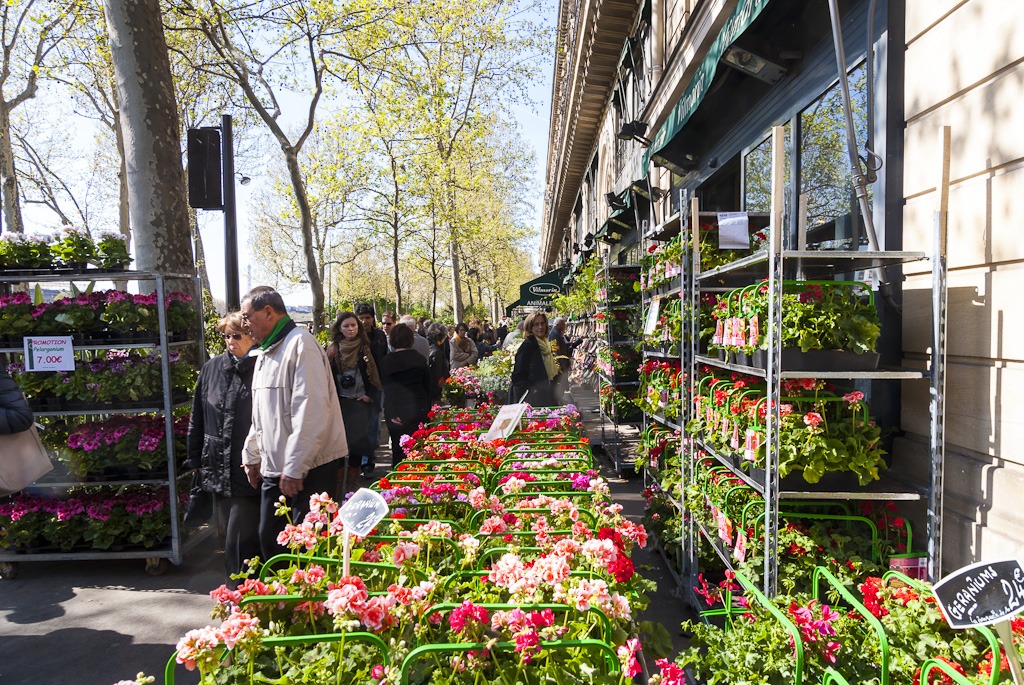Обратите внимание на полосу с надписью BUS. На нее заезжать нельзя. Идем дальше — по набережной Сены, полюбовались на выставляющихся здесь художников и цветочные магазины.